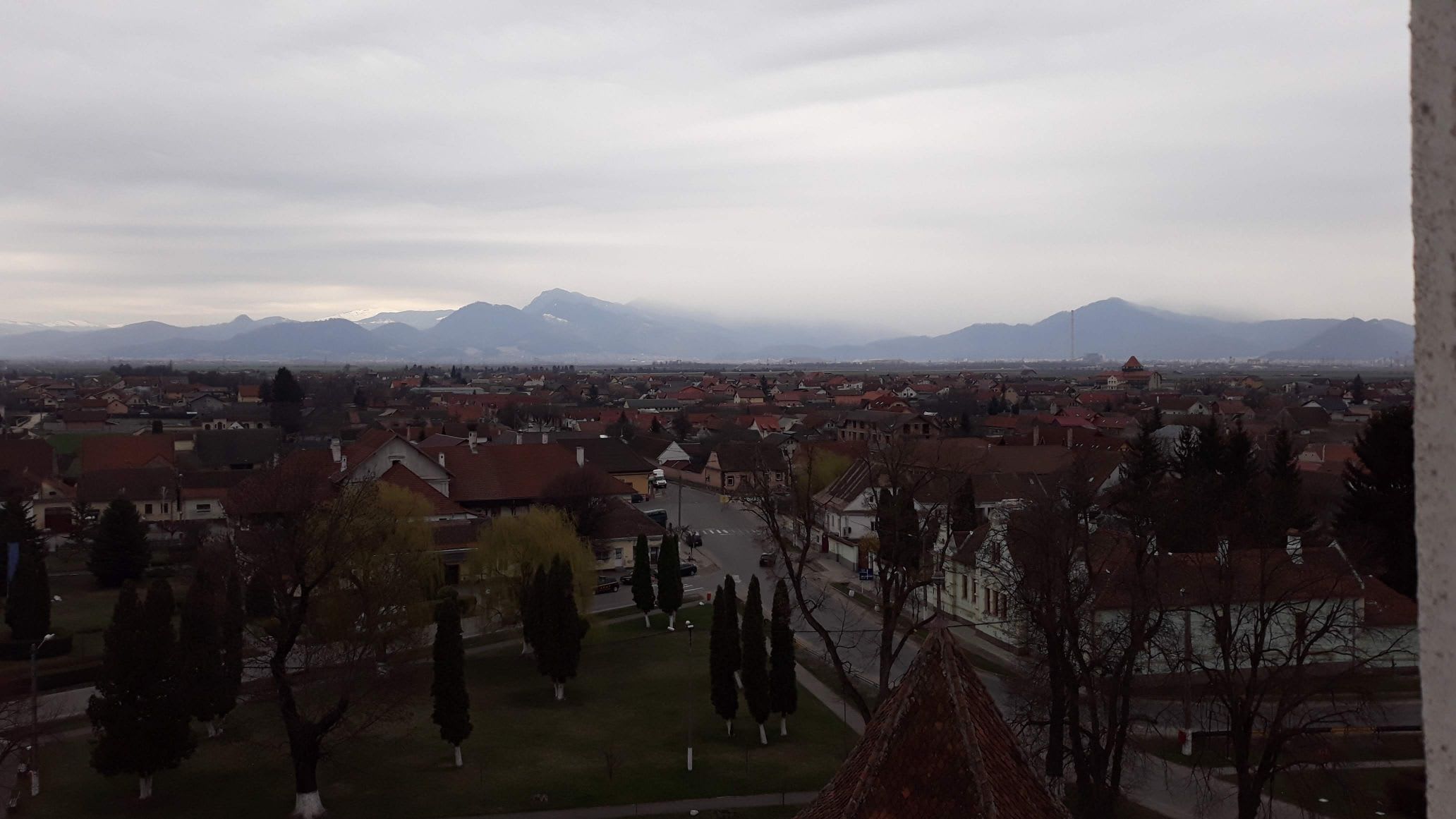 Din Turnul Clopotnita se vede bine si orasul Harman dar si Masivele Postavaru si Piatra Mare. Daca esti pasionat de geografie sau de drumetii, te uiti dupa privelistile de genul asta. Nu prea am avut ocazia sa vad muntii astia dinspre nord, din acest unghi.