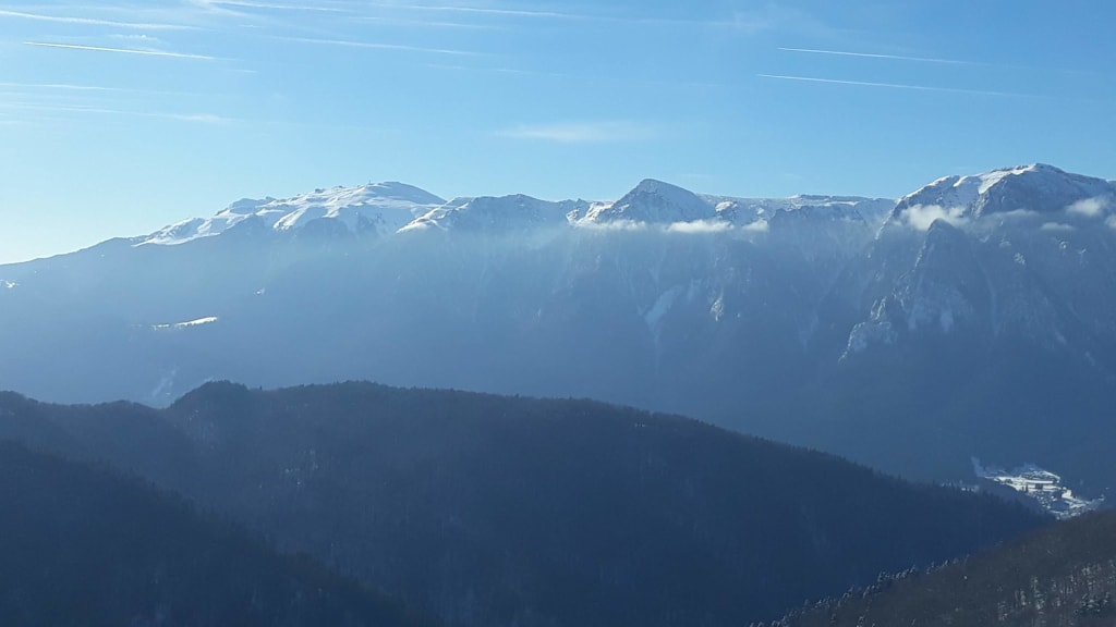 De la Predeal se vede si putin din Piatra Craiului, insa de aici, unghiul nu este la fel de deschis ca la Predeal, asa ca nu vedem Craiul, care ramane ascuns dupa Bucegi. Chiar si asa, daca e senin se vede Magura Codlei, din Muntii Persani.